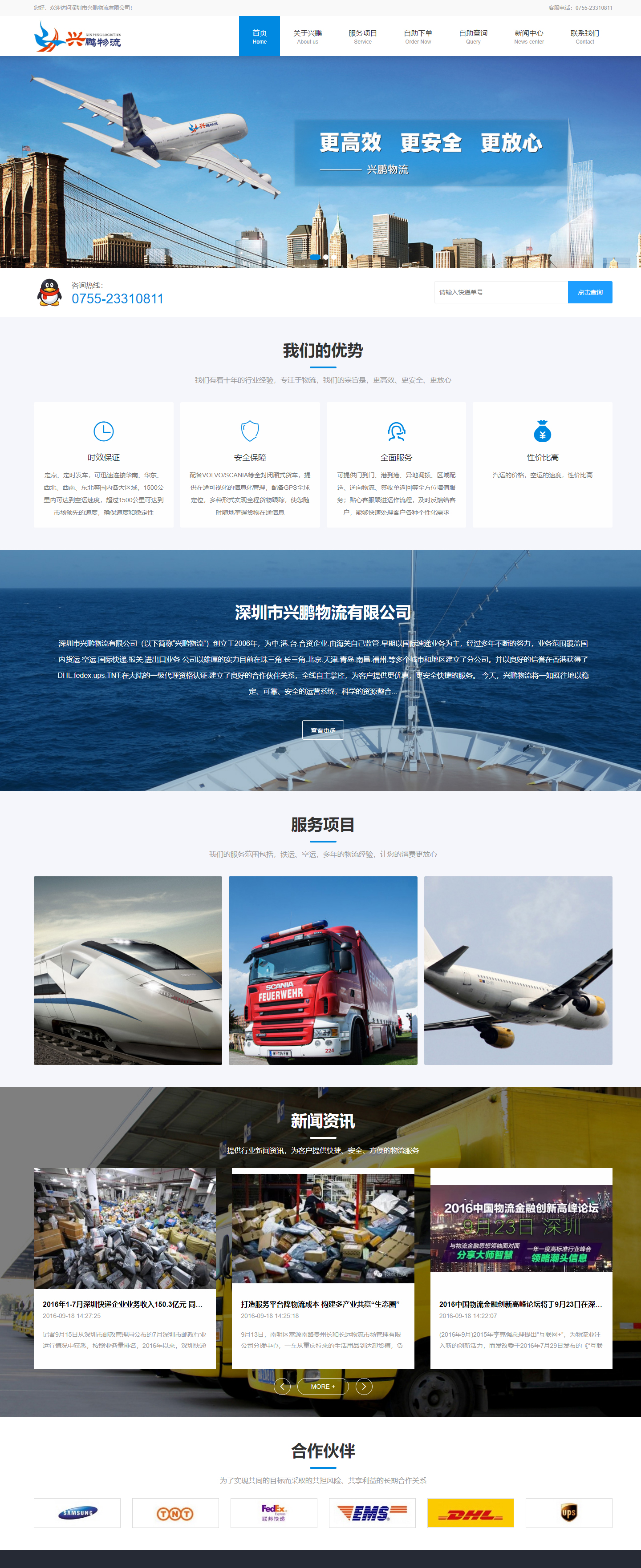 深圳市興鵬物流有限公司是通過客戶介紹找到創(chuàng)絡(luò)科技公司,所以在合作的前期沒有簽訂合同就直接下定金合作,再次十分謝謝興鵬物流公司的信任。該網(wǎng)站采用的是淺藍(lán)色為主,整體給人感覺是清潔,大方的風(fēng)格。興鵬物流公司創(chuàng)立于2006年,為中.港.臺.合資企業(yè).由海關(guān)自己監(jiān)管.早期以國際速遞業(yè)務(wù)為主,經(jīng)過多年不斷的努力,業(yè)務(wù)范圍覆蓋國內(nèi)貨運.空運.國際快遞.報關(guān).進(jìn)出口業(yè)務(wù)