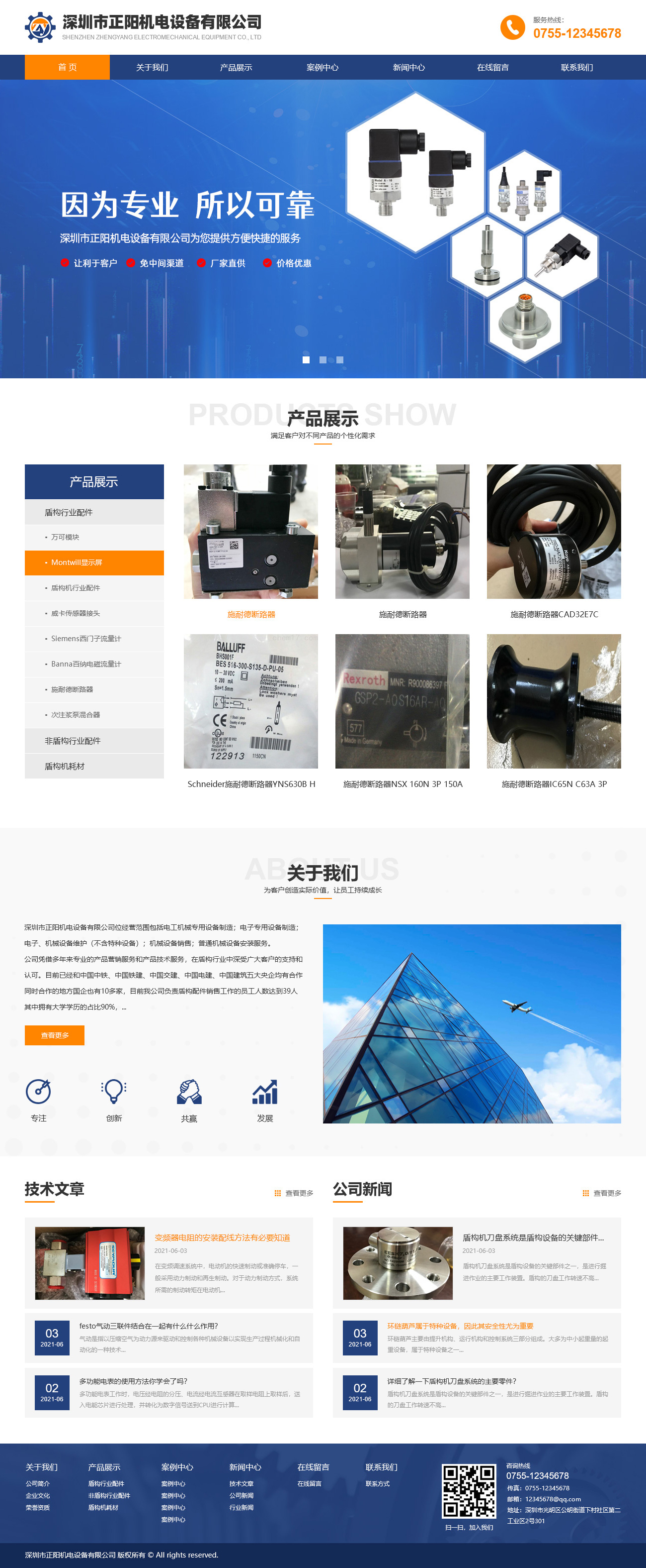 深圳市正陽機(jī)電設(shè)備有限公司網(wǎng)站采用的是藍(lán)色和橙色作為主色調(diào),整體主要以簡潔大氣為主,網(wǎng)站主要展示是機(jī)電設(shè)備為主體,在頁面中加了些許小圖標(biāo)作為點(diǎn)綴,不會顯得過于死板,頁面上整潔,清晰,在設(shè)計(jì)的過程種盡量采用更加直觀的方式來展示,整個頁面瀏覽下來板塊布局清晰,增加瀏覽體驗(yàn)需求。